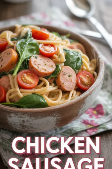 I don’t usually hype weeknight food but this Chicken Sausage Pasta makes me pause. With precooked chicken sausage and fresh baby spinach it somehow fe